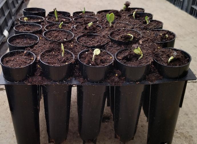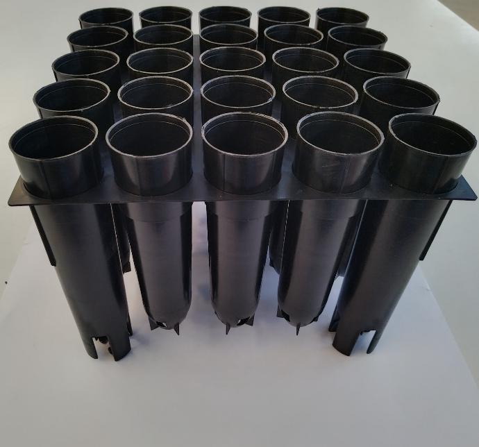 Cylindrical germination pot, held by a stable support, with ventilation holes for better air circulation. The roots are directed downward, thus promoting deep and vigorous growth of young plants.