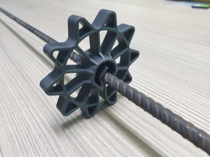 Plastic star wheel spacer to ensure even distance between the reinforcement and the formwork